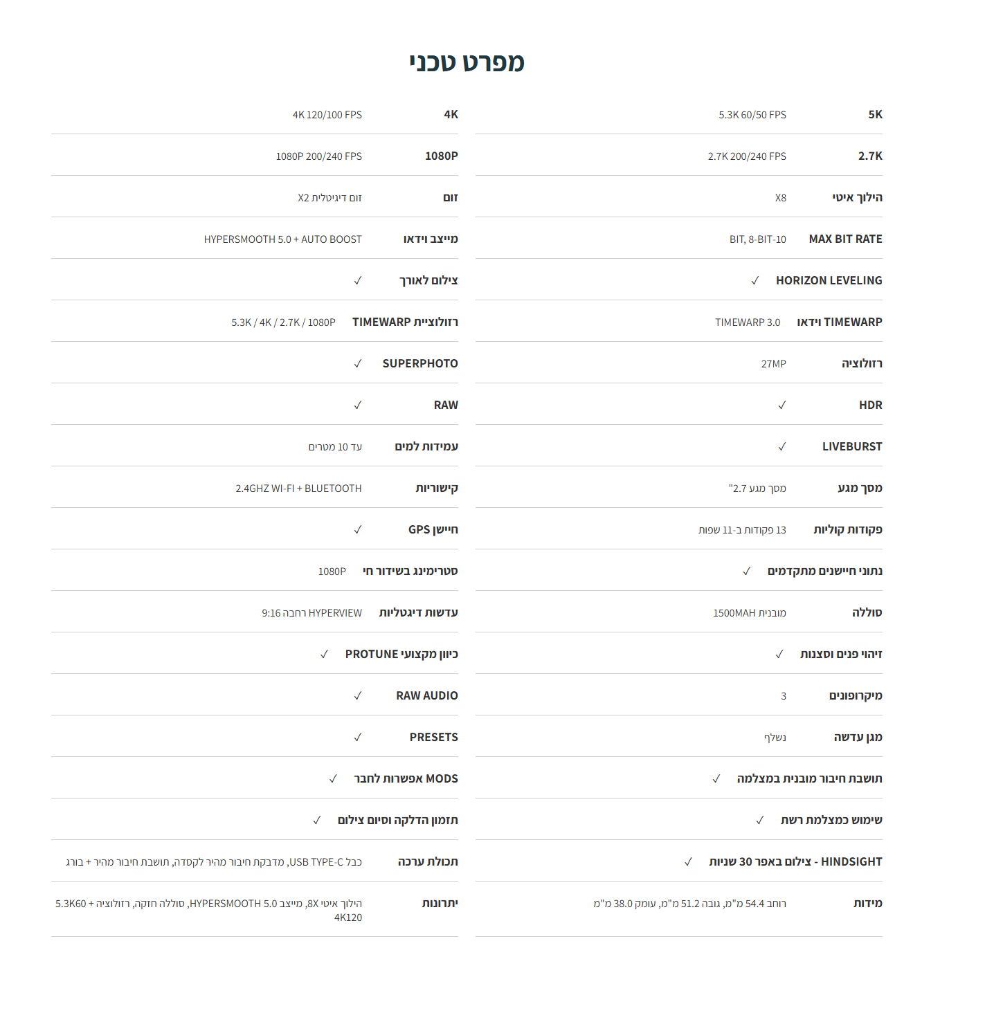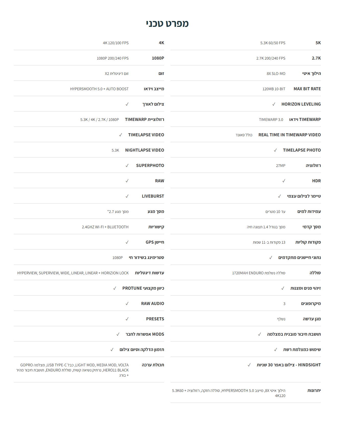 מצלמת אקסטרים 3K ומייצב 0.5 HyperSmooth כולל מיקרופון ייעודי להפחתת רעשי סביבה מתאים לספורט