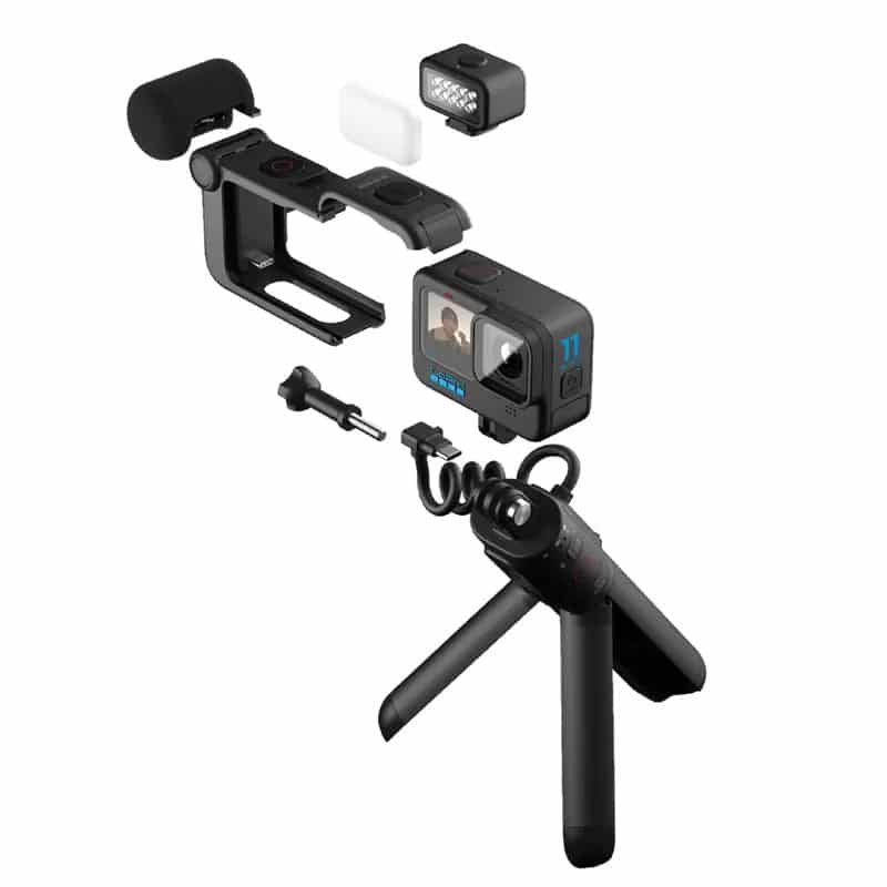 ערכה מושלמת לוולגרים המכילה מצלמת HERO11 Black, מוט VOLTA המאפשר להטעין את המצלמה ולהגדיל את משך זמן הצילום, תושבת Media Mod המכילה 3 מיקרופונים – להקלטת סאונד באיכות גבוהה ופנס Light Mod שיעזור לכם לצלם בכל זמן.