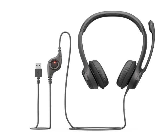 | CONNECT BETTER Simply plug the USB-A connector into your computer and you’re ready to talk or listen right away. The 6.23 ft (1.9 m) cable gives you the freedom to stand up and stretch during long conversations. MEET BETTER Handy in-line controls on the cable let you adjust the volume or mute calls without disruption. |
