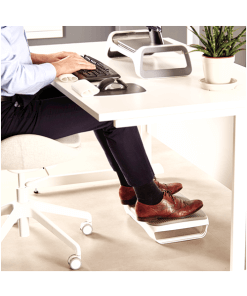 הדום לרגלים ארגונומי מעוצב בצבע לבן לנוחות מרבית בשעות עבודה מרובות, מאפשר מתיחת הרגלים והגברת זרימת הדם, מציע משטח גמיש לתוספת נוכות ותמיכה.