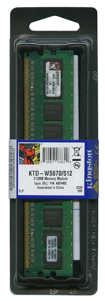 KTD-WS670/512 Kingston 512MB PC2-3200 DDR2-400MHz ECC Registered CL3 240-Pin DIMM Single Rank Memory Module for Dell PowerEdge A0374932, A0380697, A0395461, A0396703, A0396707, A0422902, A0428479, A0466928, A0466929
