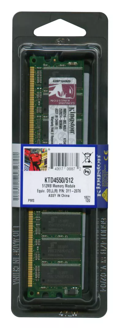 KTD4550/512 Kingston 512MB PC2700 DDR-333MHz non-ECC Unbuffered CL2.5 184-Pin DIMM 2.5V Memory Module for Dell 311-2076; A0136892; A0388037