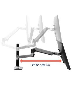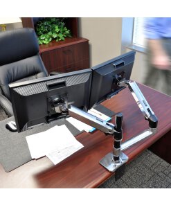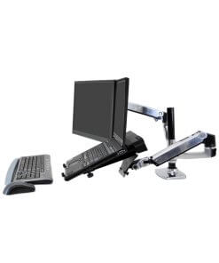 זרוע ארגונומית כפולה Ergotron 45-248-026 יכולה להחזיק בחיבור לשולחן 2 מסכים בגודל של עד 27 אינץ' (בחיבור אופקי – זה לצד זה) כל מסך ובמשקל מ-7 עד 20 פאונד (3.2-9.1 ק"ג). זרוע ארגונומית זו בעלת גמישות מרבית עם טווח הזזה של 25 אינץ' (65 ס"מ קדימה אחורה) אופקית, ניתן לכוונן אותה גם ב-13 אינץ' (33 ס"מ מעלה ומטה) אנכית ולקפל אותה כדי לפנות את שולחן העבודה כאשר המסך אינו בשימוש. זרוע זו מאפשרת התקנת 2 מסכים על שולחן העבודה ולפנותו לעבודה שאינה ממוחשבת. (למרות שהסרטון בתמונות הממוזערות מציג הנחיות להתקנת זרוע הרכבה לשולחן, שימו לב שהפונקציונליות והמפרטים של זרוע ההרכבה לשולחן LX ו זרוע ההרכבה על הקיר של LX זהה, למרות שמיקום ההרכבה שונה.)