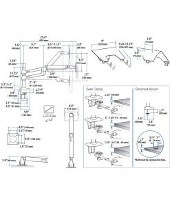 - * קיבולת משקל: משקל LCD בודד = 7–20 פאונד (3.2–9.1 ק"ג); טווח משקל מחשב נייד = 2.5-12 פאונד (1.1-5.4 ק"ג); משקל מרבי משולב של צגים = 40 פאונד (18.1 ק"ג)