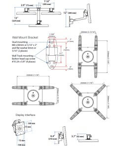 - מתחבר ישירות למשטחים אנכיים יציבים. כאשר יש צורך בתמיכה נוספת, הזמינו אביזר צלחת קיר או מסלול קיר (Wall Track דורש גם תושבת בהזמנה נפרדת 97-091)