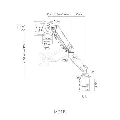 תכונות: זרוע שולחנית למוניטור עד 27 אינץ' SIH | MO1B