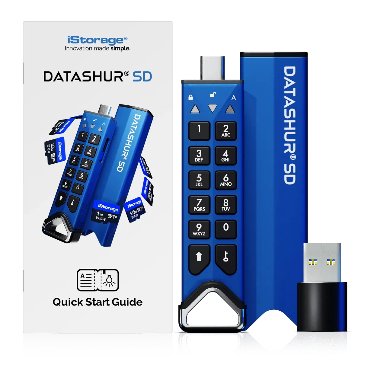 What's included: → datAshur SD with Protective Sleeve → Type C to A adapter → Quick Start Guide → 3 Year Warranty | ![]() |