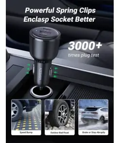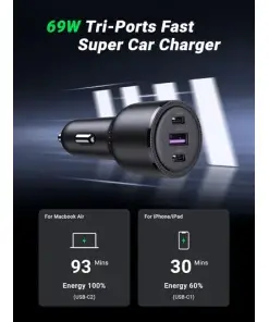 מטען לרכב 3 חיבורים USB ו-Type-C הספק 69W שחור UGREEN | 20467| PD+QC Fast Charger