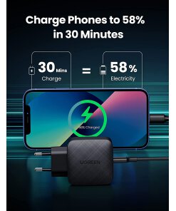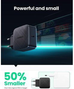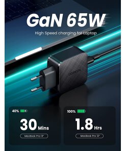 מטען קיר Type-C הספק 65W בצבע שחור UGREEN | 70817 | GaN Fast Charger