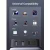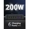 למטען שולחני Ugreen 200W יש בסך הכל 6 חיבורי USB בהספק כולל של 200 וואט. ארבע היציאות הראשונות הן מסוג USB-C ושתי האחרונות הן יציאות USB-A. בשל עוצמת היציאה הגבוהה, המטען מתאים לטעינת מחשבים ניידים, טאבלטים וסמארטפונים, גם אם רוצים להטעין מספר מכשירים בו זמנית. לדוגמה, אתה יכול לטעון ללא מאמץ שני מכשירי אייפון ושני מחשבי מקבוק בו-זמנית.