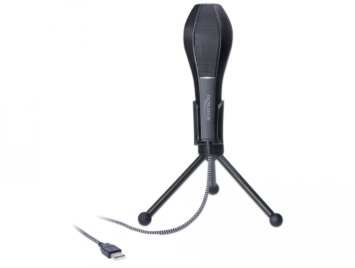 מיקרופון USB מקצועי זה של חברת Delock יכול לשמש לשידורי דיבור וקול באיכות גבוהה. המיקרופון בעל תבנית מעגל (בכל כיוון) ולכן לוכד את האות האקוסטי באופן אידיאלי. בגלל עוצמה גבוהה, רעש עצמי נמוך וביצועים מדויקים, אפילו הצלילים הטובים ביותר מוקלטים בצורה אופטימלית. ניתן לקפל את מעמד השולחן ולהעבירו בקלות במידת הצורך.