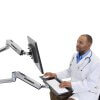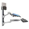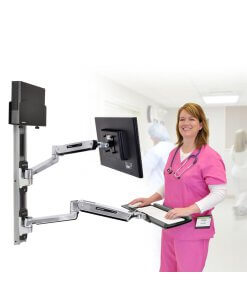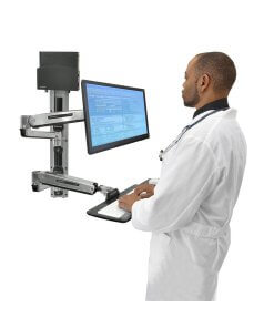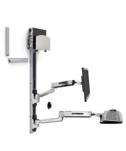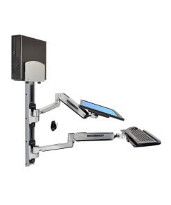 תחנת עבודה ישיבה עמידה ארגונומית מושלמת – באמצעות מערכת תלייה ארגונומית ישיבה עמידה לזרועות 45-358-026 של יצרנית הארגונומיה הטובה בעולם Ergotron ניתן לתכנן תחנת עבודה ישיבה עמידה ארגונומית מושלמת עם שילוב של מקלדת ועכבר. עמדת עבודה ארגונומית מושלמת עם אפשרויות כיוון מרובות לנוחות עבודה ופרודוקטיביות מרבית עם תחנת עבודה מלאה זו. מקם מחדש את המסך או המקלדת שלך למעלה ולמטה או מצד לצד כדי לפנות מקום בזמן של חוסר שימוש. מערכת התלייה על הקיר תומכת ב-LCD, מקלדת ומחשב עם טביעת רגל קומפקטית המשתלבת במקומות צרים.