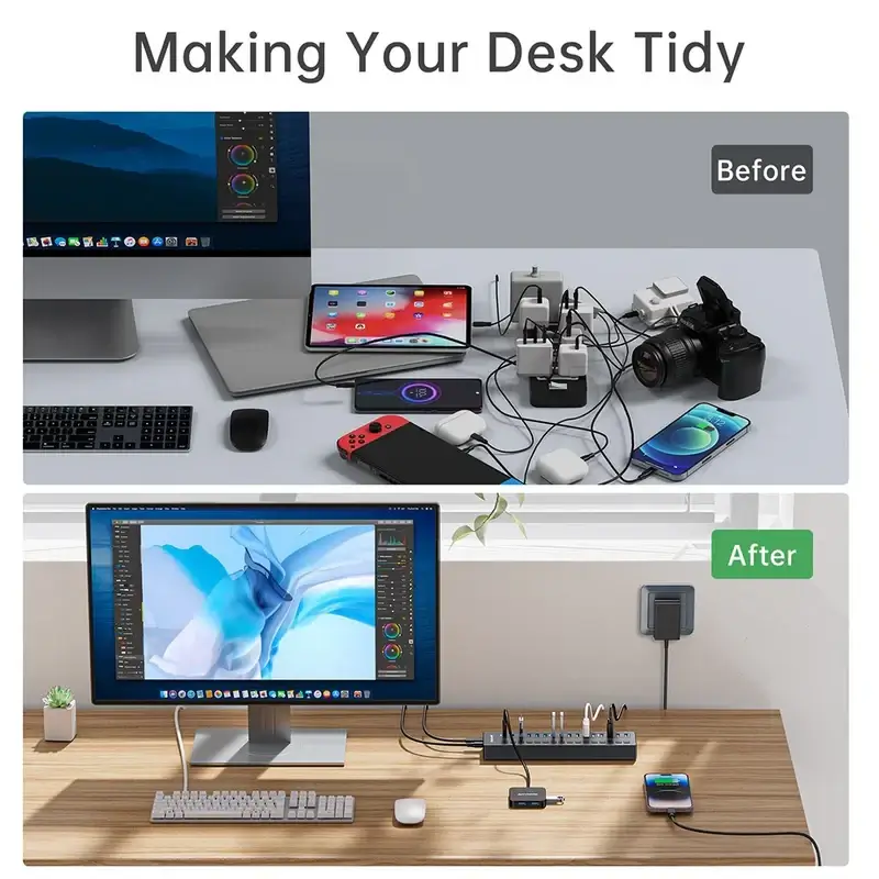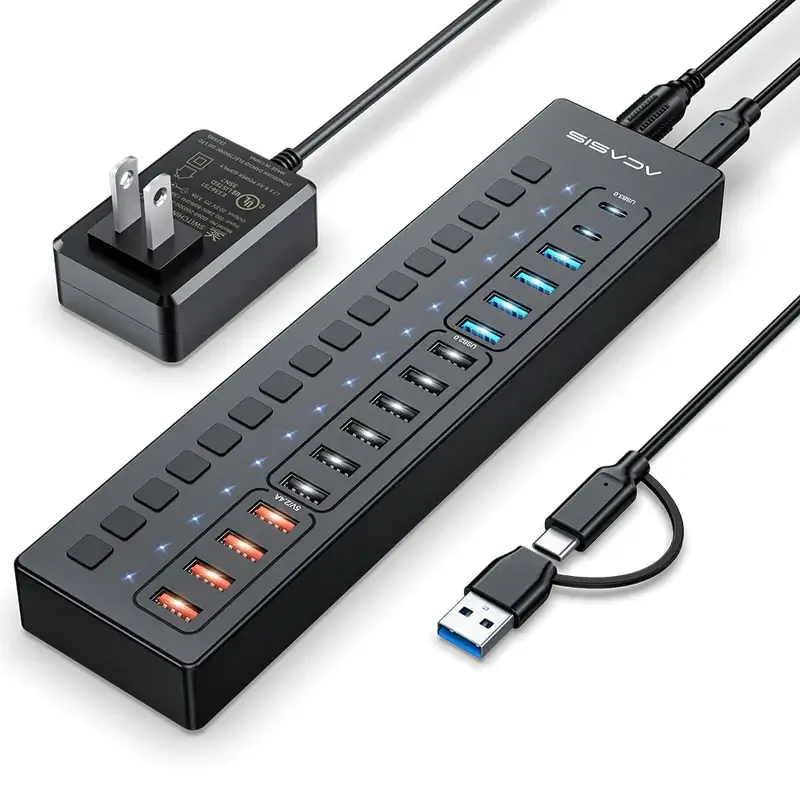 • 4×USB A יציאות טעינה חכמות+4×USB A 3.0+2×USB C 3.0+6×USB 2.0