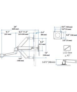- * קיבולת משקל: 7 עד 25 פאונד (3.1 עד 11.3 ק"ג). עם צגים במשקל של יותר מ-20 פאונד (9.1 ק"ג), טווח התנועה האנכי עשוי להיות מופחת עד 4.5 אינץ' (11 ס"מ) עבור טווח גובה כולל של 8.5 אינץ' (22 ס"מ)