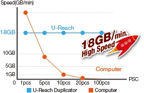 משכפל U-Reach SATA HDD מסוגל להעתיק במהירות 18GB/min. על כל הדיסקים הקשיחים בו זמנית, ללא כל ירידה במהירות ככל שמספר המטרות גדל. משכפל זה נהדר עבור יצרנים.