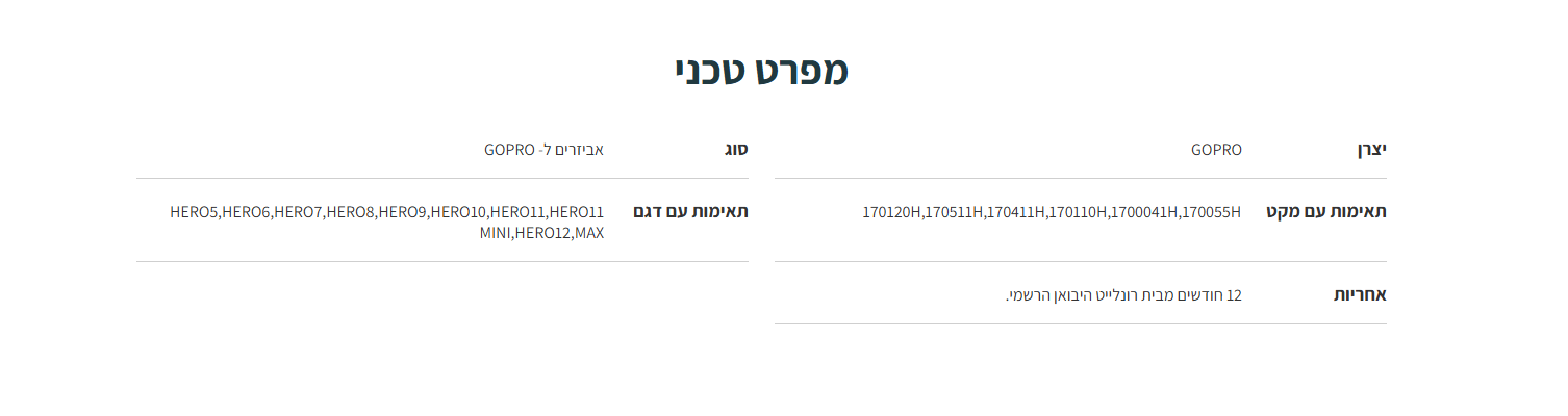 - תושבת חיבור מהיר המאפשרת חיבור של כל מצלמות ואביזרי GoPro.