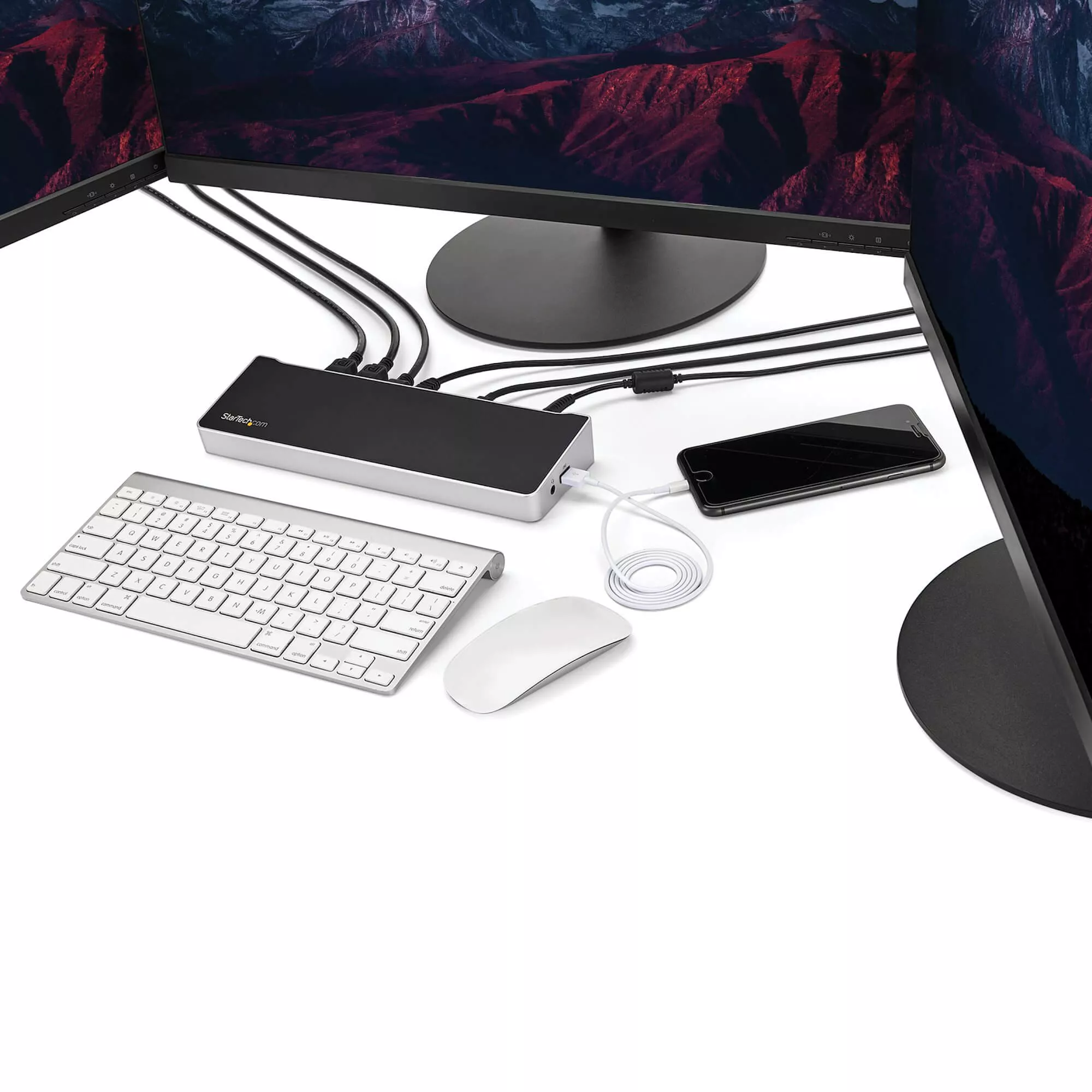 תחנת העגינה הזו משולשת 4K עבור מחשבי Mac, Windows ו-Chrome USB-C עוזרת לך לקחת את הפרודוקטיביות לרמה חדשה לגמרי. עם שלושה חיבורי וידאו 4K,