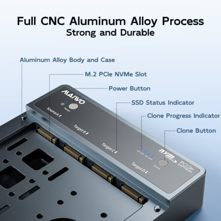תיאור Type: USB Type C Hard Drive Enclosure Duplicator for 2.5″/3.5″ SATA HDD/SSD and M.2 NVMe SSDBrand: MAIWOColor: BlackOverview: Dual Bay External Hard Drive Enclosure: this HDD/SSD enclsoure supports a M.2 NVMe SSD and a 2.5/3.5 inch SATA hard drive, best solution for different SSDs/HDDs, one bay is compatible with M.2 NVMe solid state drive [...]