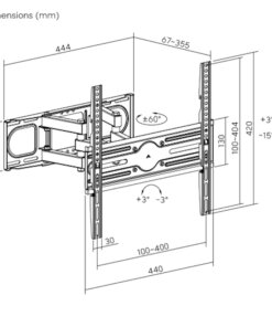 Type: Full-motion TV Wall MountColor: BlackLoad capacity: up to 40kgMax screen Size: up to 70”Vesa: 100×100, 100×150, 150×100, 100×200, 200×100, 150×150, 200×200, 300×200, 400×200, 300×300, 400×300, 400×400Overview: