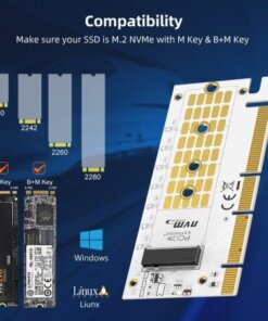 Support PCIe x4 x8 x16 card slot for Windows 7/8/10 & Linux, Applicable to sizes 2230 2242 2260 2280 M-Key NVME SSD, NOT support SATA-based M.2 AHCI SSD (Key B/B+M), please confirm your SSD before.