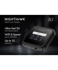 Netgear Nighthawk M6 Pro MR6500 הוא נתב נייד מתקדם בטכנולוגיית 5G, המיועד לספק חיבור אינטרנט מהיר ואמין בכל מקום. הדגם מותאם לרשת Telstra ותומך בתדרי 5G mmWave לצד 5G Sub-6, לשילוב של מהירויות גבוהות במיוחד עם כיסוי רחב ויציב.