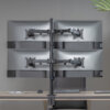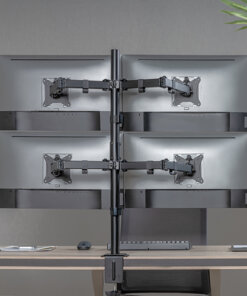 Type: Quad-Monitor Monitor MountColor: Matte BlackLoad capacity: up to 9kg (each monitor).Max screen Size: 32”Vesa: 75×75 / 100×100Overview: