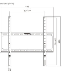 Vesa: 50×50, 75×75, 100×100, 100×150, 150×100, 100×200, 200×100, 150×150, 200×200, 200×300, 300×200, 200×400, 400×200, 300×300, 300×400, 400×300, 400×400